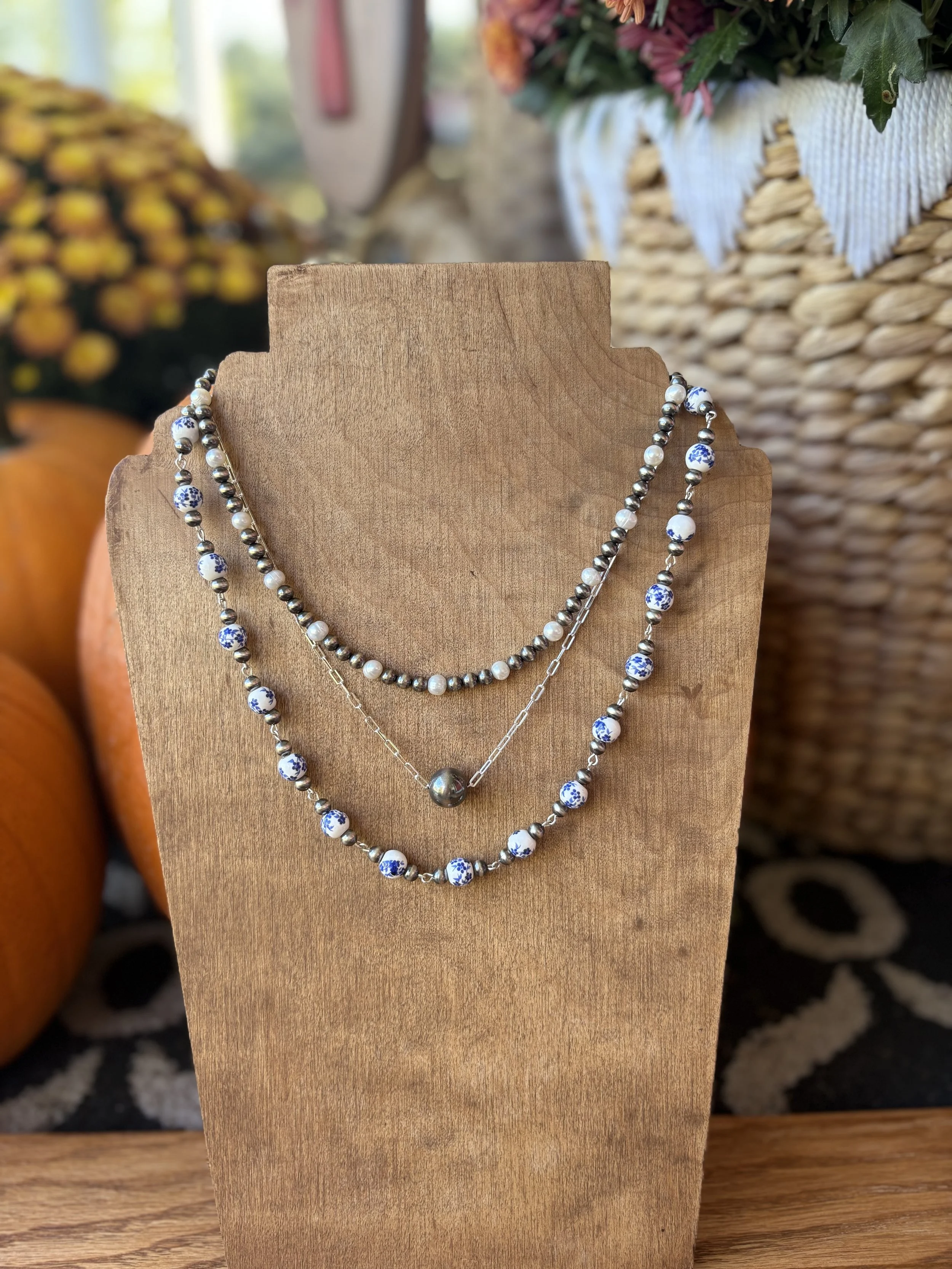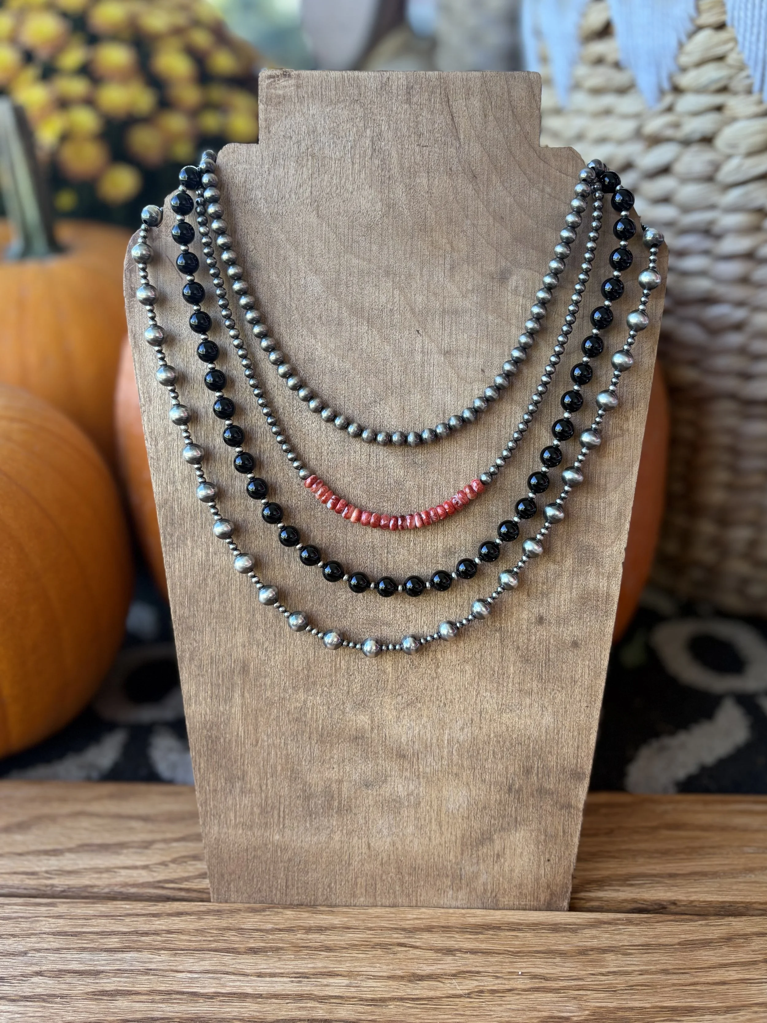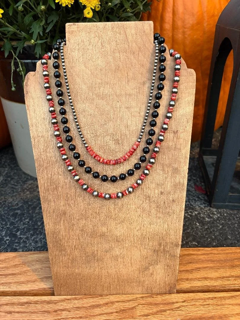 Blue Floral and Navajo Black Onyx and Red Spiney Mixed Mixed Navajo, Red Spiney, Black Onyx Fresh Water Peal and Blue Floral